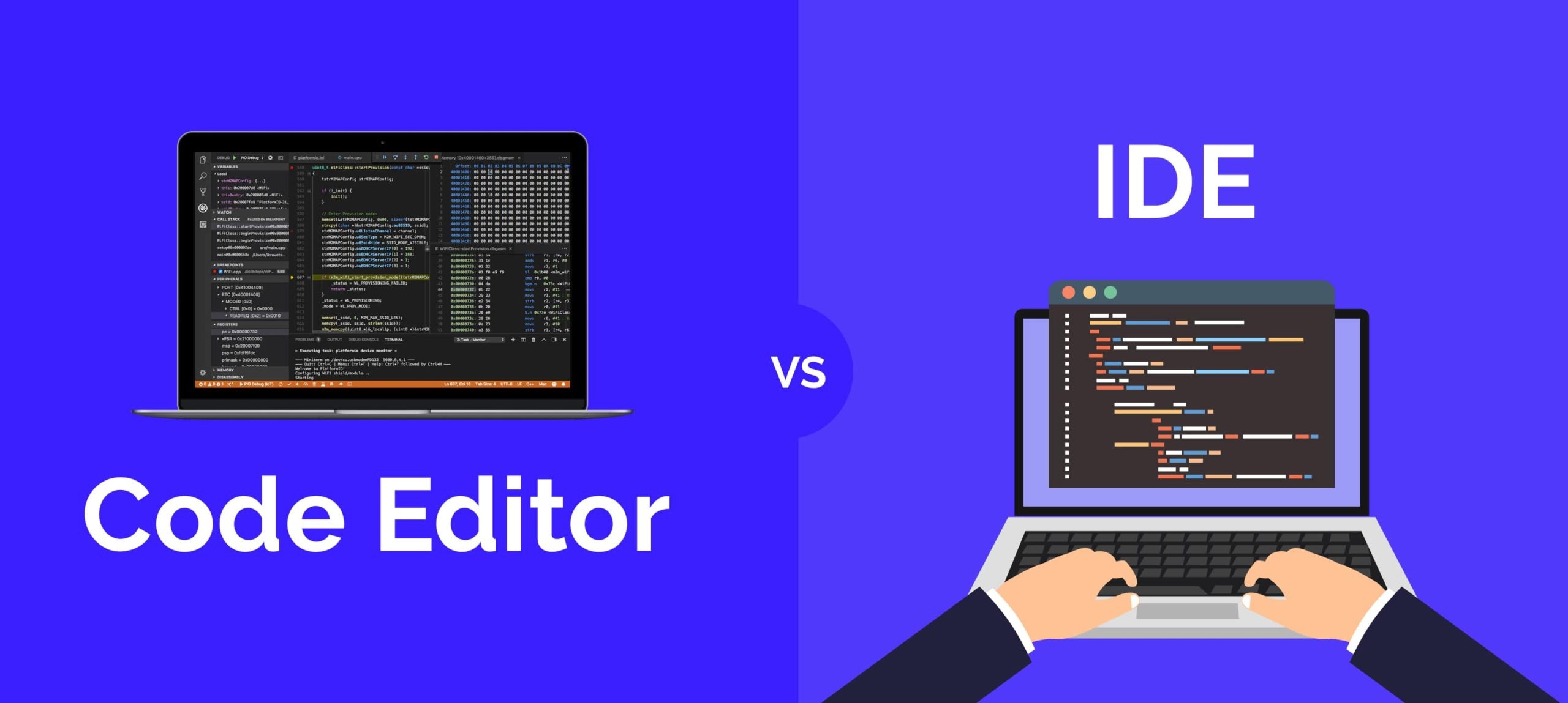 IDE’ler, yazılım geliştirme sürecinin tüm aşamalarını tek bir çatı altında toplayan kapsamlı araçlardır. Kod yazma, derleme, hata ayıklama, test etme ve dağıtım gibi işlemleri entegre bir şekilde sunarlar. Kod editörleri ise, daha hafif ve genellikle daha hızlı olan, temel olarak kod yazma ve düzenleme işlevlerine odaklanan araçlardır. IDE’ler genellikle daha büyük ve karmaşık projeler için tercih edilirken, kod editörleri daha küçük projeler veya hızlı düzenlemeler için idealdir. Derleme ve hata ayıklama, bir IDE’nin tanımı gereği yapması gerekenlerdir. Kod editörleri, ek kurulum ve yapılandırma gerektirse de, doğru eklentiler ile beraber derleme ve hata ayıklama için de kullanılabilir.